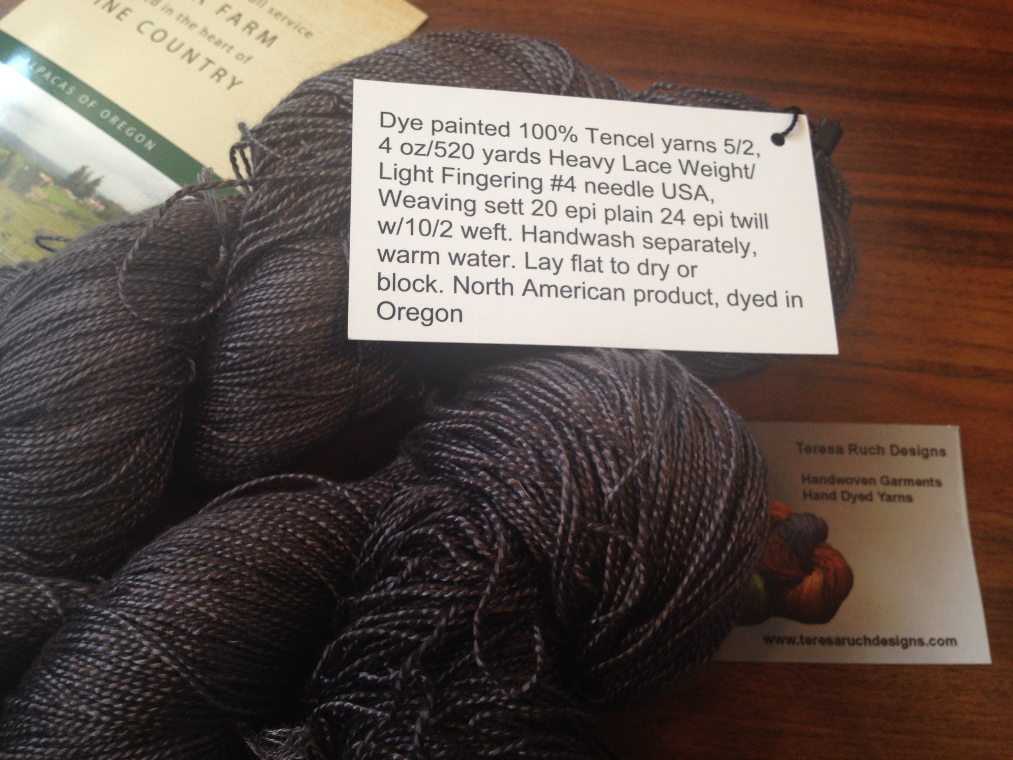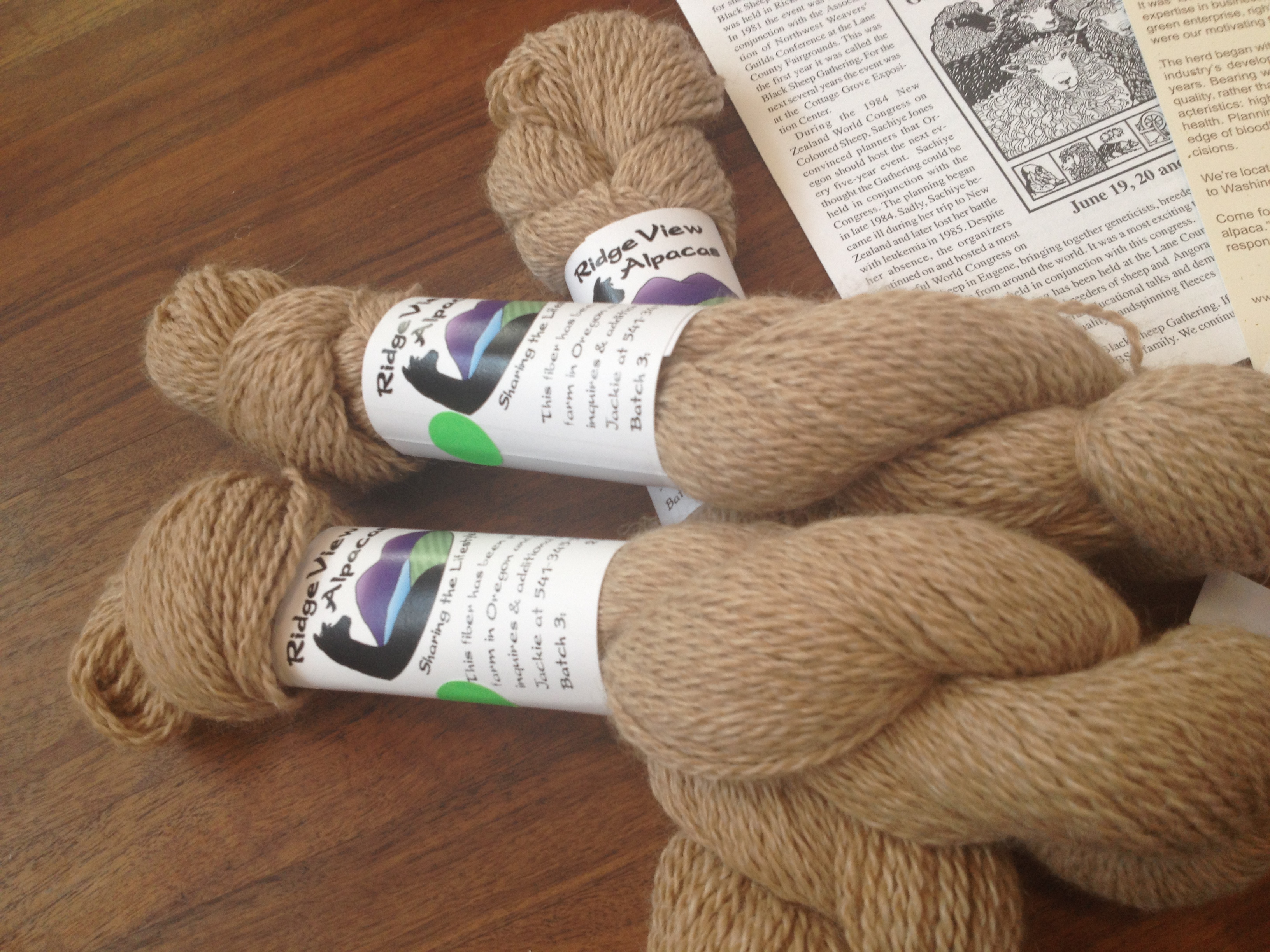 I splurged on a couple things: first, this gorgeous Alpaca blend from Ridge View Alpacas. I love how they put the names of the alpacas who contributed to the yarn on the bands—talk about sourcing your products! Sky Dancer and Blue—I thank you! No idea what this is going to turn into, but I cannot wait to handle this pretty stuff!